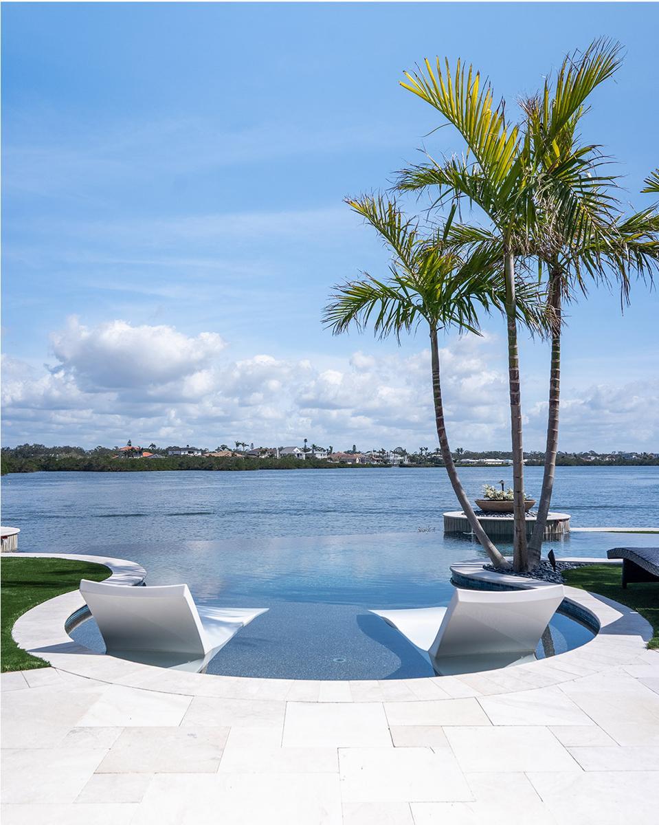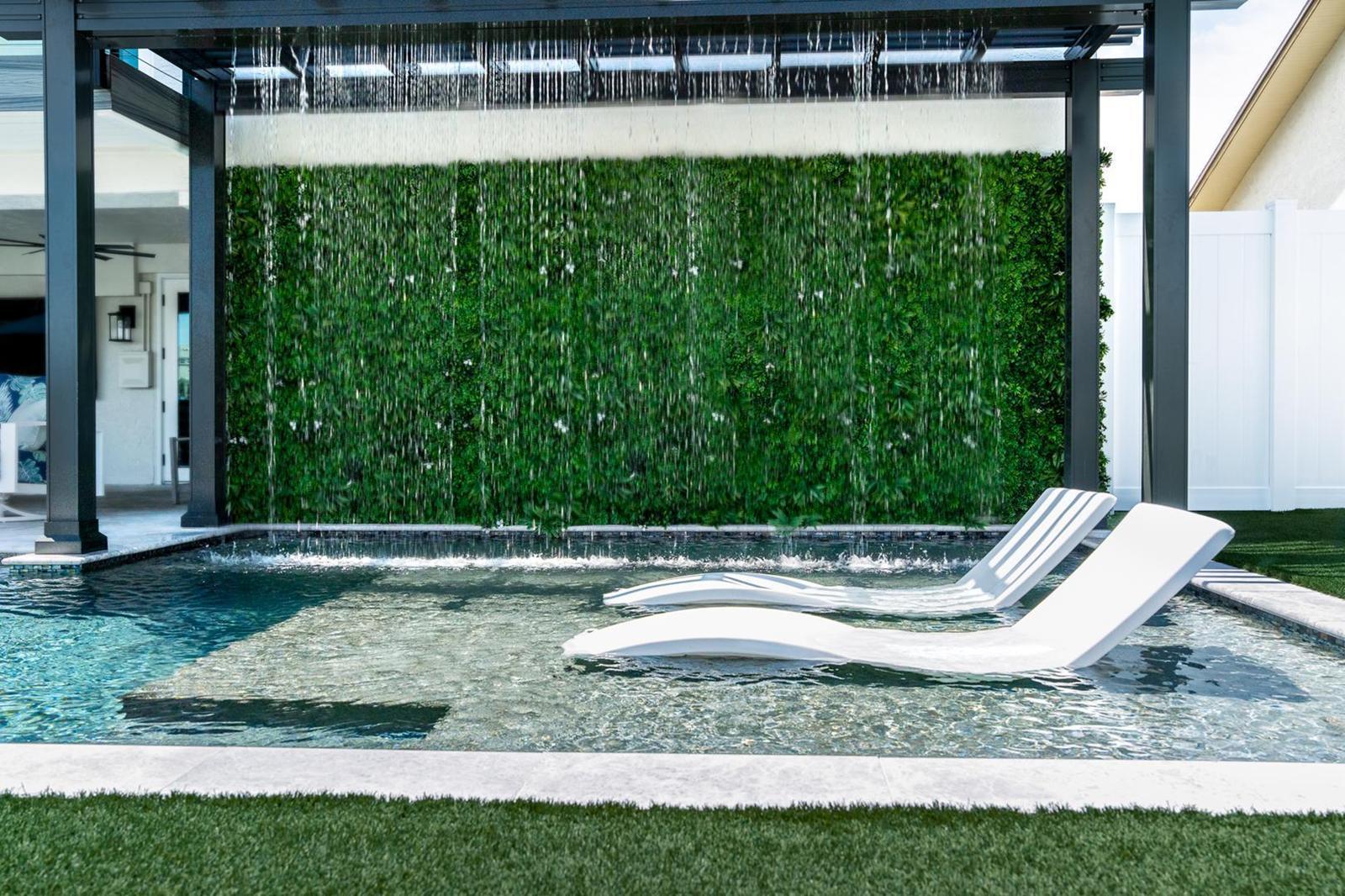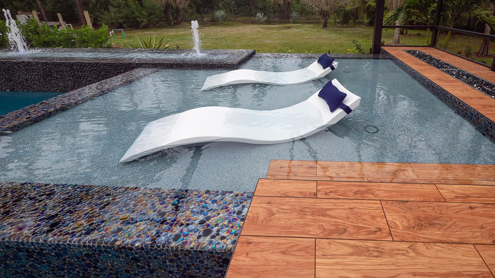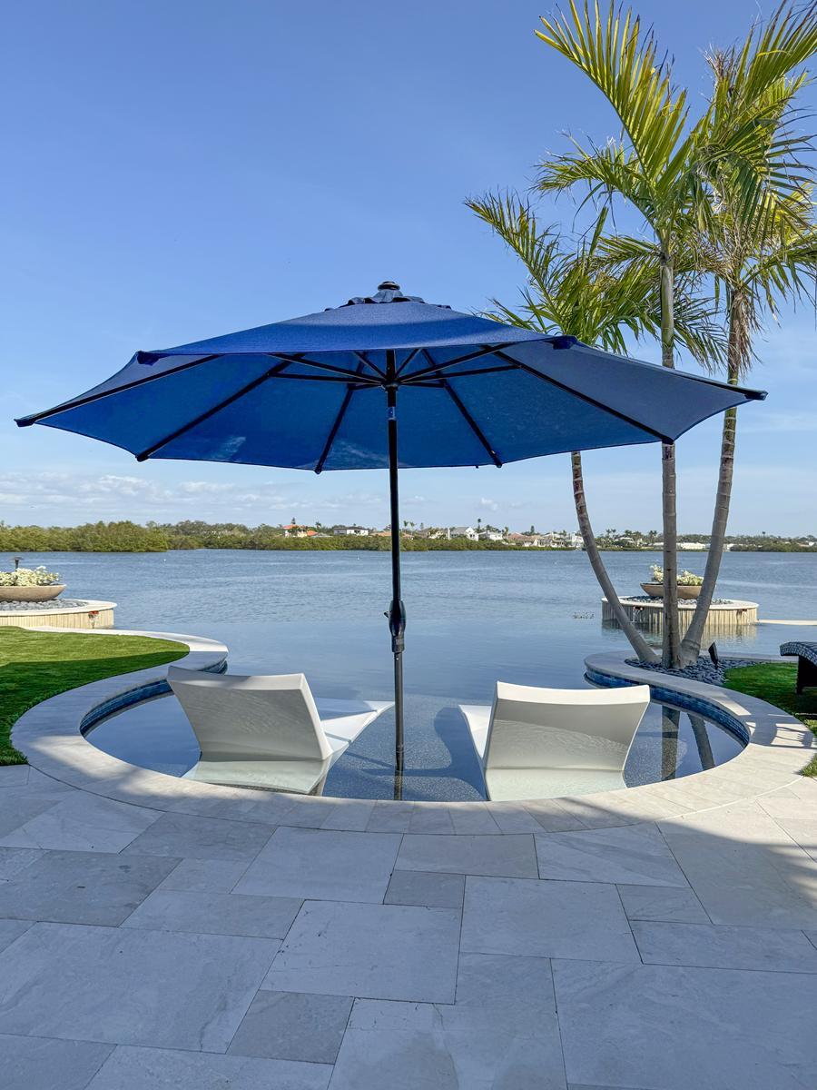 Customization is central to every Lucas Lagoons Sun Shelf. Homeowners can incorporate in-water loungers, umbrella sleeves for shade, bubblers, and soft LED lighting to enhance both daytime relaxation and nighttime ambiance. The size and shape of the shelf are carefully planned to accommodate everything from quiet sunbathing to social gatherings with family and friends. Natural textures and finishes ensure the shelf blends seamlessly with the surrounding water and landscape.
