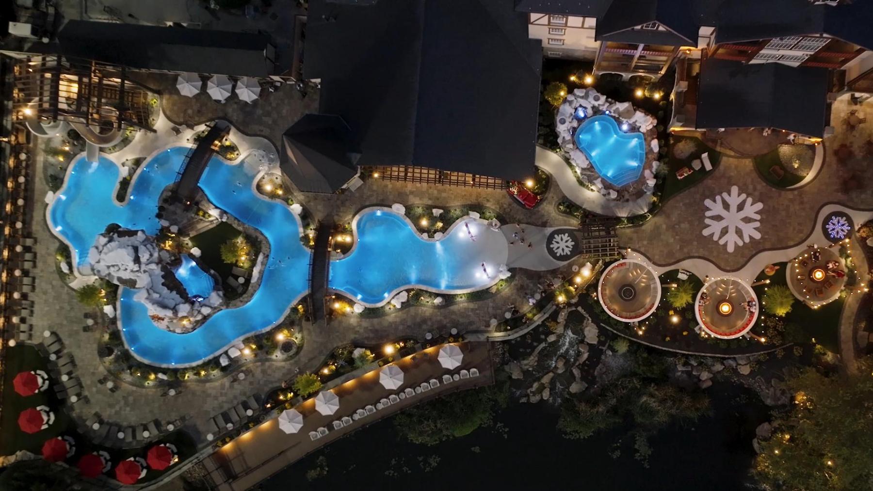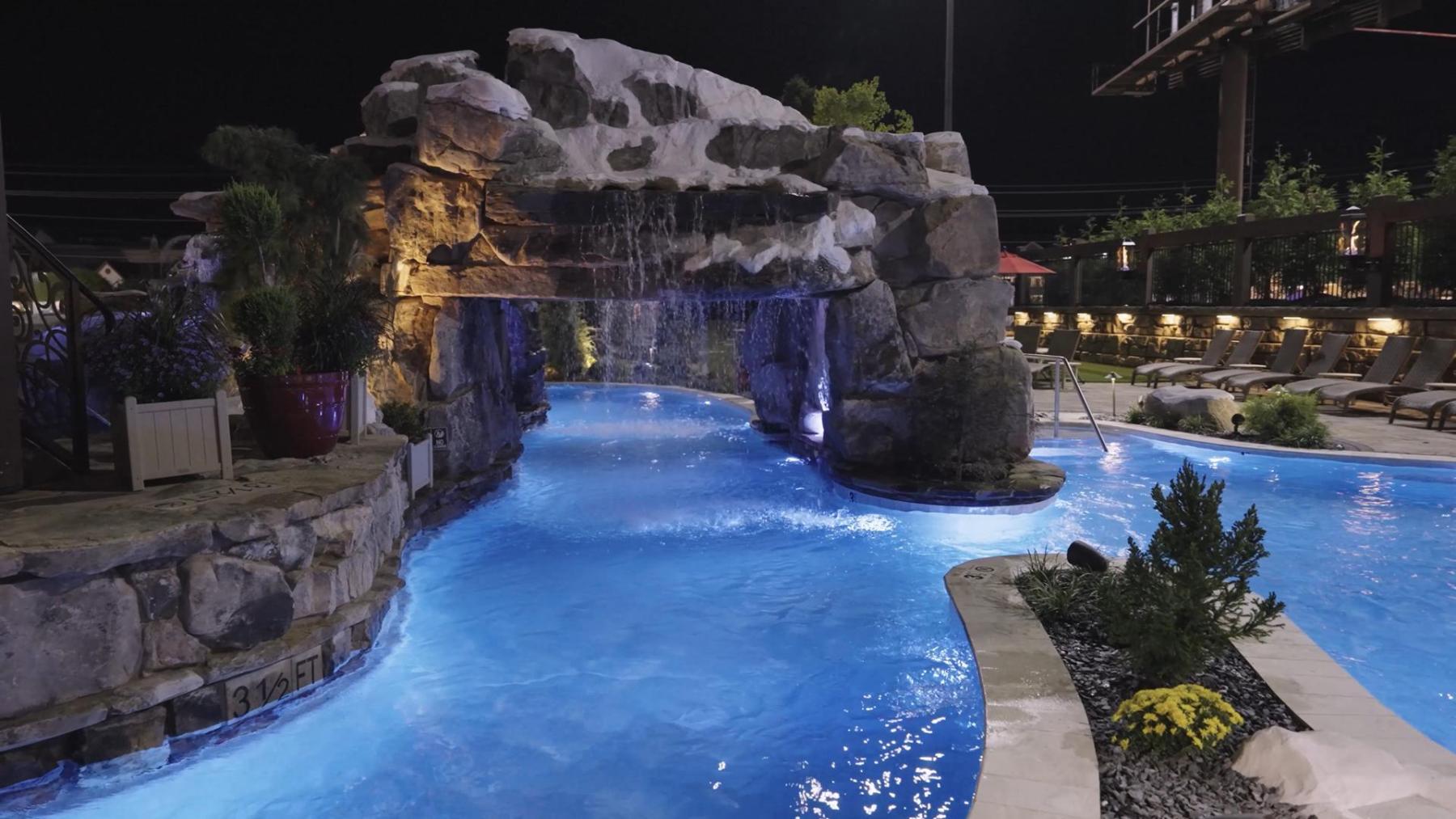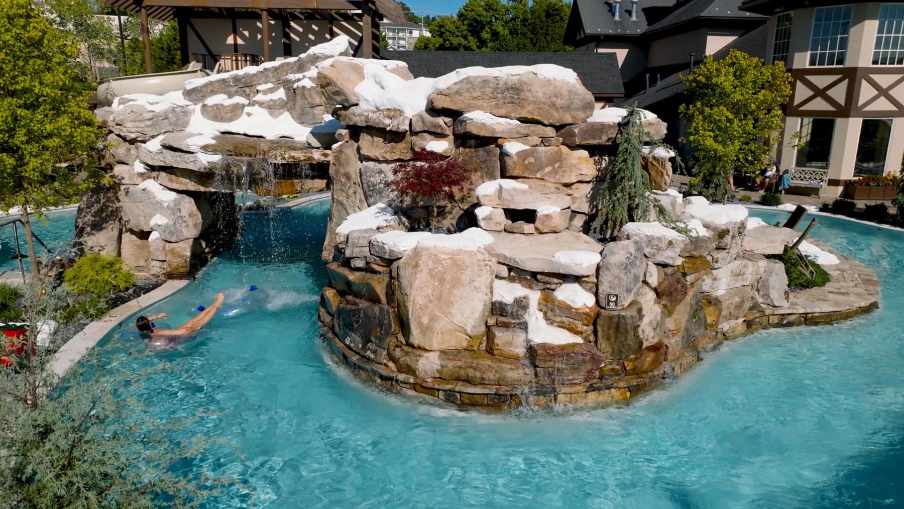 Would you swim in this pool? Well, you now can as a guest at The Inn at Christmas Place. Welcome to the Winter Wonder Lagoon. We designed and built this Insane Lazy River Pool located in Pigeon Forge.